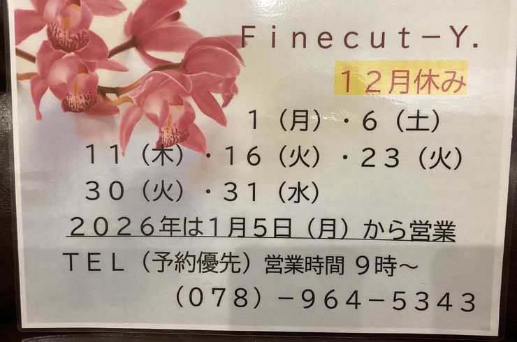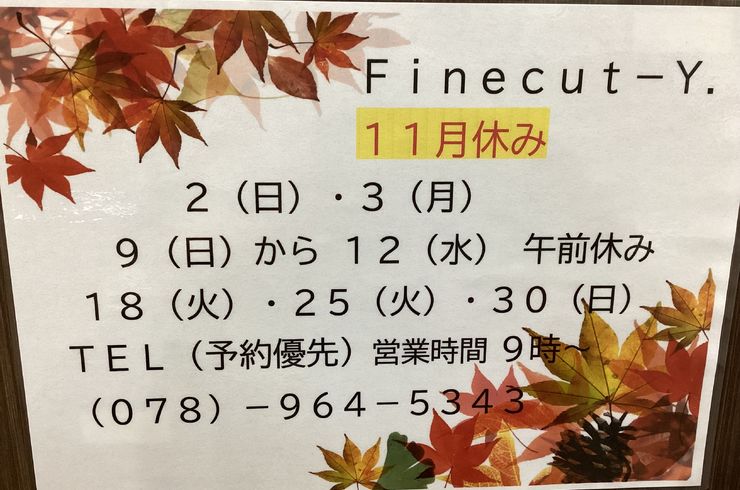 明石の美容室Fine cut-Y.日常の様子をブログにて配信中