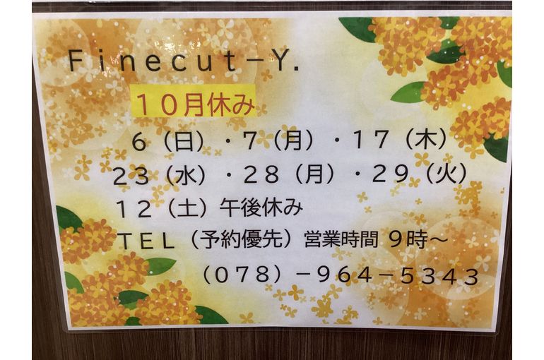 明石の美容室 Fine cut-Y.☆2024年10月休み