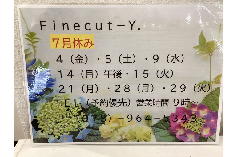 明石の美容室 Fine cut-Y.☆2025年7月休み