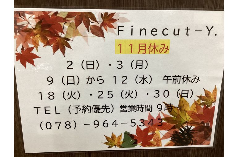 明石の美容室 Fine cut-Y.☆2025年11月休み
