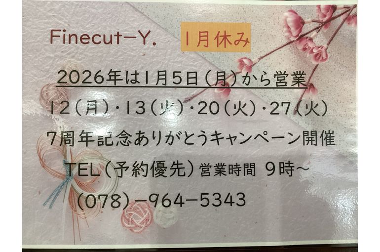 明石の美容室 Fine cut-Y.☆2026年1月休み