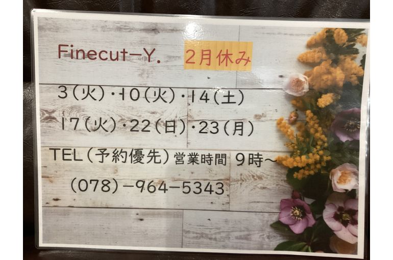 明石の美容室 Fine cut-Y.☆2026年2月休み