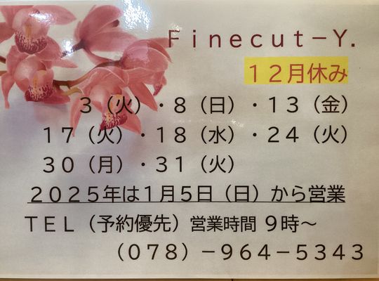 明石の美容室 Fine cut-Y.☆2024年12月休み
